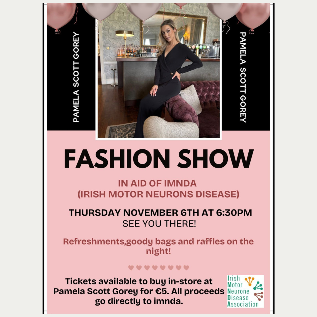 A fashion show will take place in Pamela Scott in Gorey in Co. Wexford on Saturday 6th November, tic...