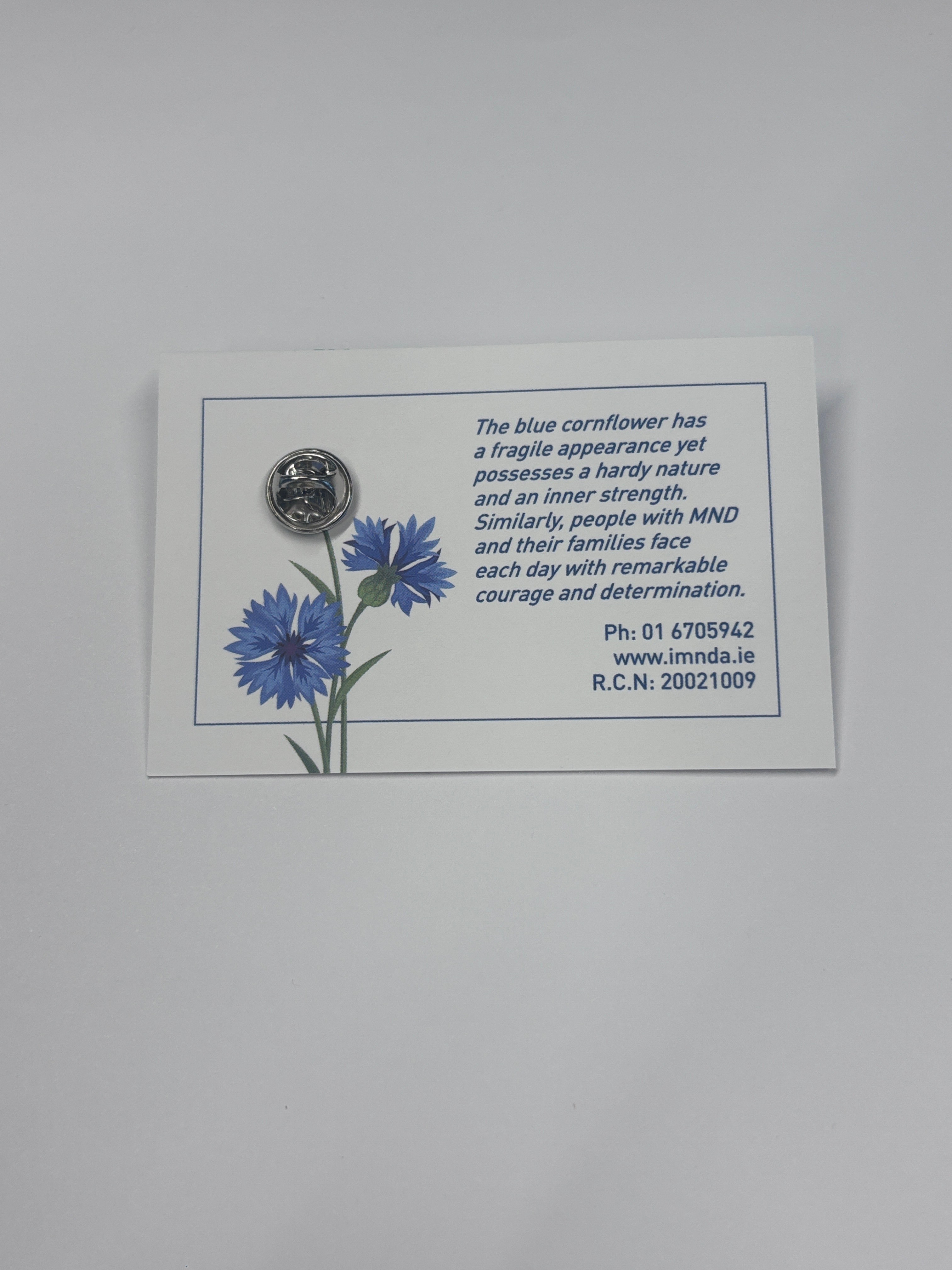 You can show your support for those living with MND with our elegant cornflower pin; which is metal with an enamel finish.